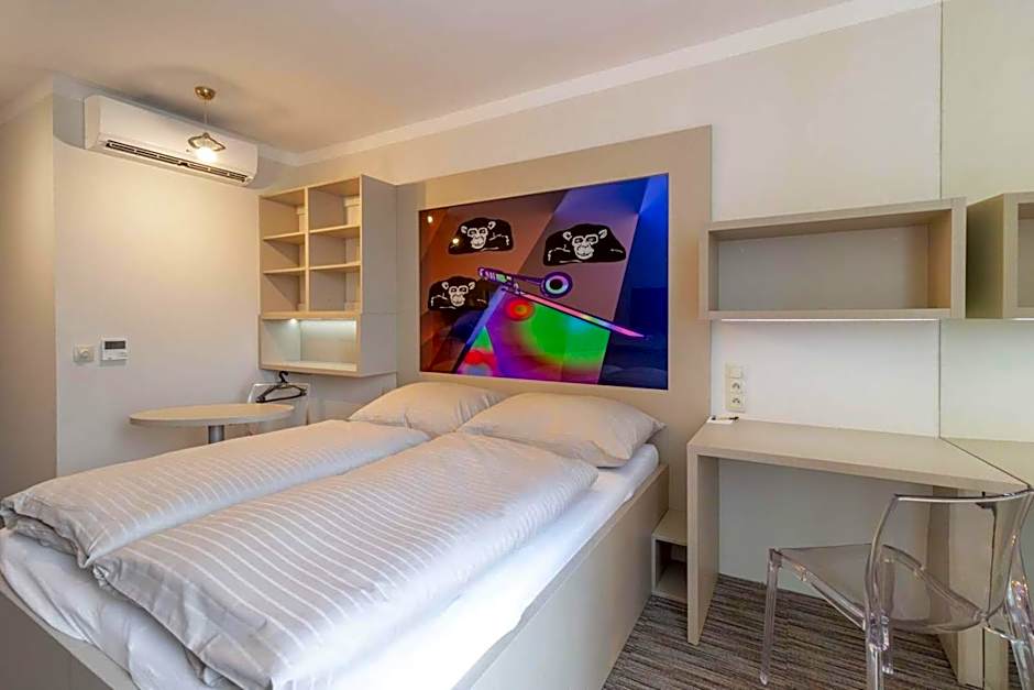 Providing free toiletries, this twin/double room includes a private bathroom with a shower and a hairdryer. Guests can make meals in the fully equipped kitchenette that features a stovetop, a refrigerator and a microwave. The air-conditioned twin/double room provides a flat-screen TV with satellite channels, soundproof walls, a tea and coffee maker, a wardrobe as well as city views.
