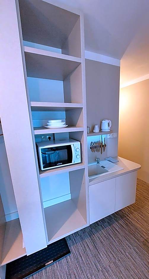 Providing free toiletries, this twin room includes a private bathroom with a shower and a hairdryer. The fully equipped kitchenette features a stovetop, a refrigerator, kitchenware and a microwave. The air-conditioned twin room provides a flat-screen TV with satellite channels, soundproof walls, a tea and coffee maker, a wardrobe as well as city views.
